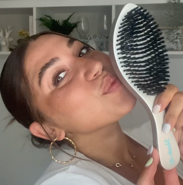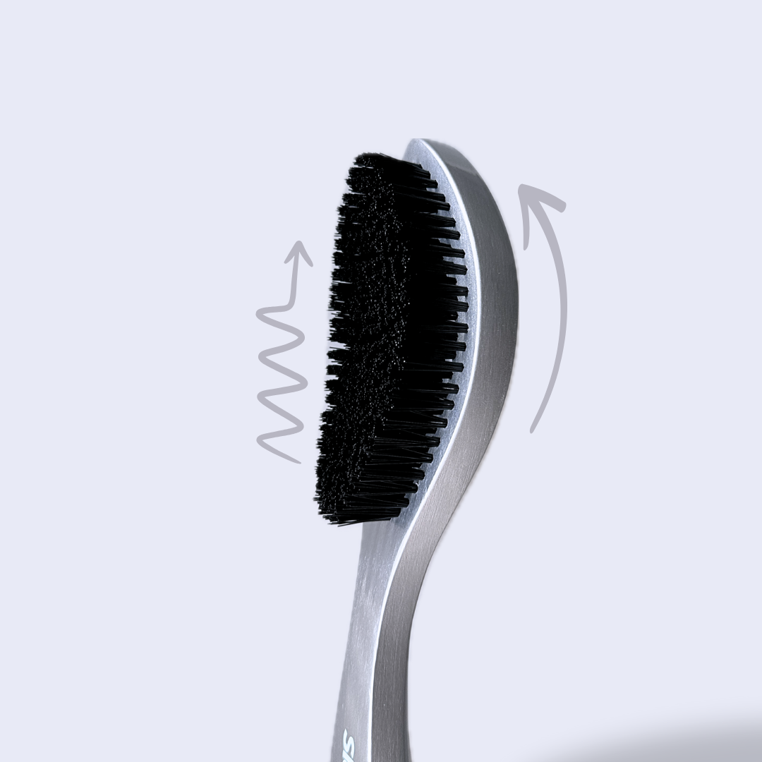Die rundung der Bürste passt sich deiner Kopfform an und erwischt alle Haare in einem Zug